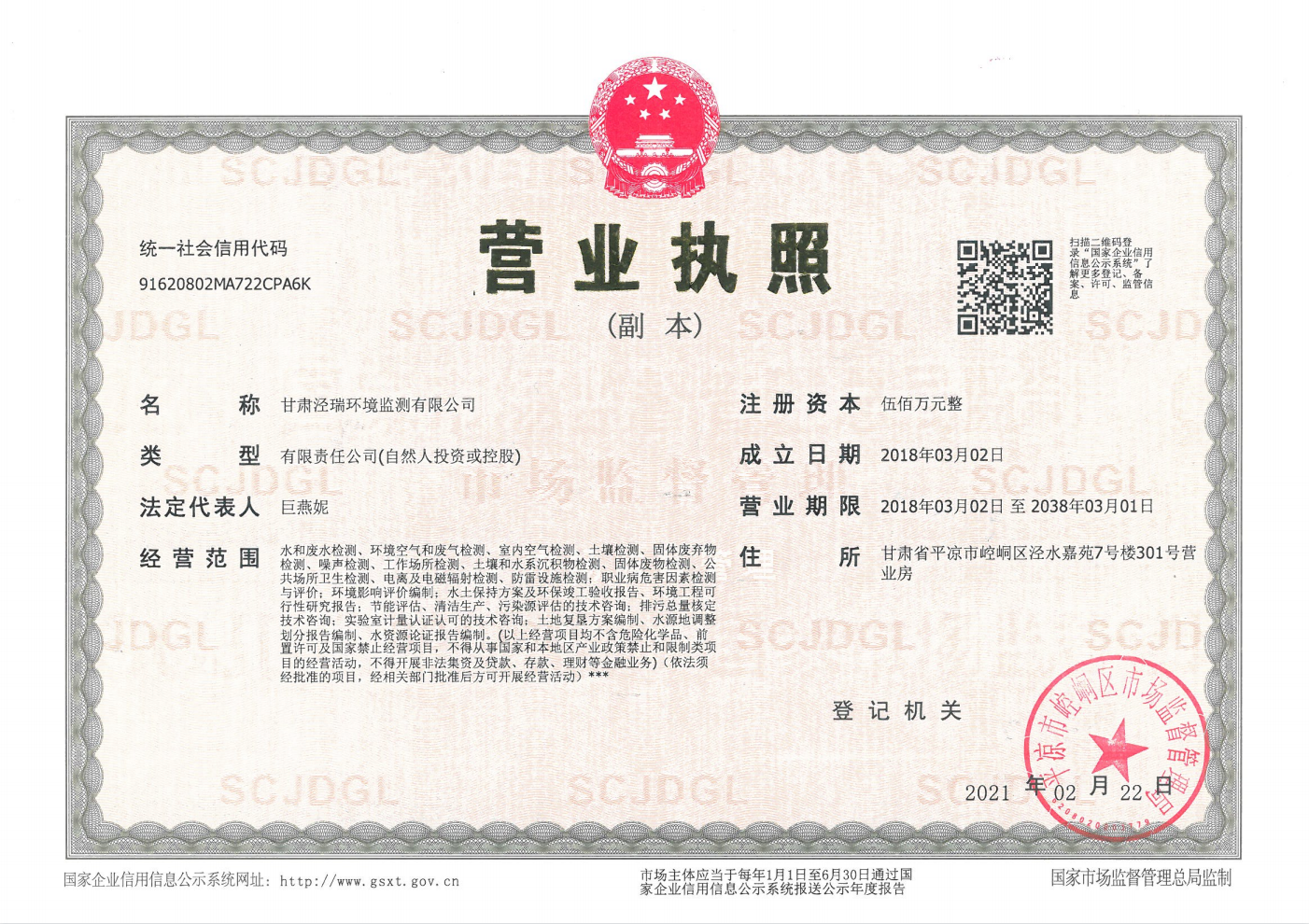 甘肅涇瑞環(huán)境監(jiān)測有限公司