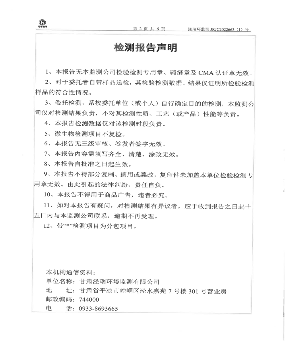 華亭市樂華冶化有限責(zé)任公司自行檢測報告